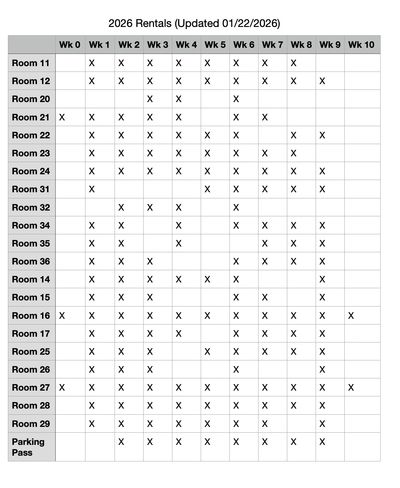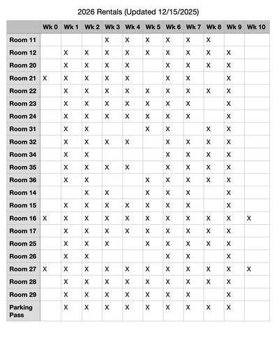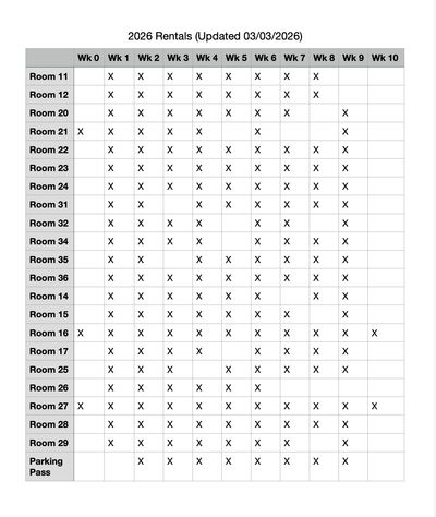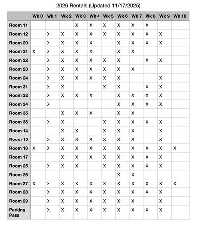 Reservations of 5 weeks or more are eligible for a 10% discount! This could be one room for 5 consecutive weeks OR 5 different rooms reserved for the same week!!